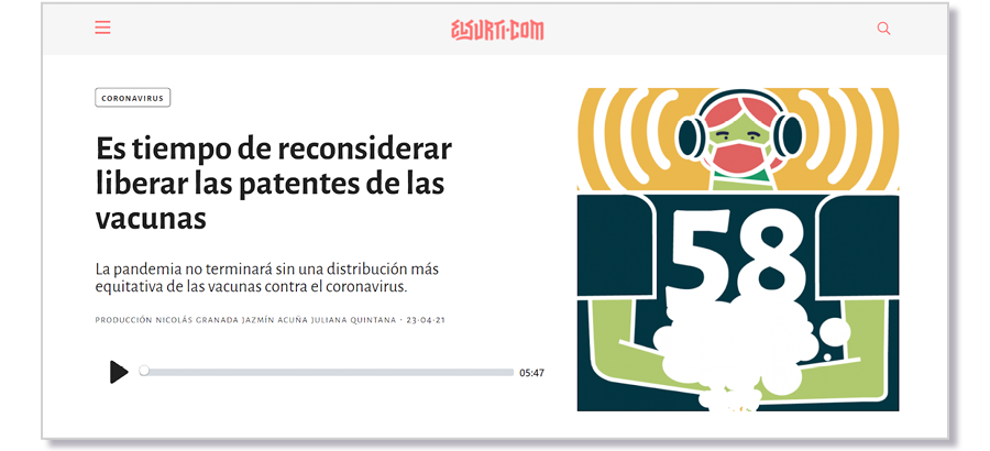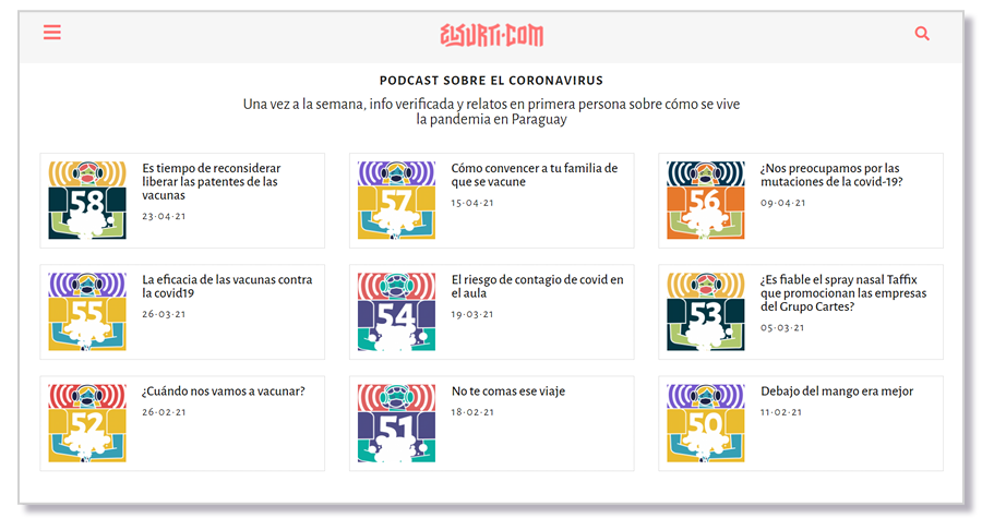 2. Podcast: los chequeos adoptan el formato audio y proporciona información verificada sobre distintos temas vinculados al Covid-19. En cada episodio, al igual que con los chequeos web, desmentimos información falsa o brindamos explicaciones acerca de temas complejos como las cepas de la covid. Se producen los lunes y martes, se editan los miércoles y se emiten todos los jueves, semanalmente.
