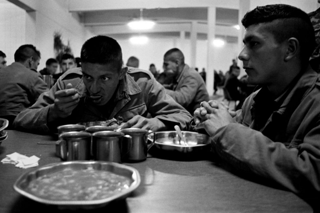Soldados de Aeronáutica se preparan para el almuerzo, Base Aérea de Luque 1990.