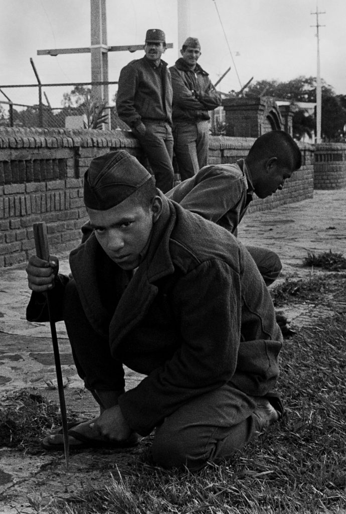 Infantes de Marina limpiando el patio de la Armada Nacional, Asunción 1990.