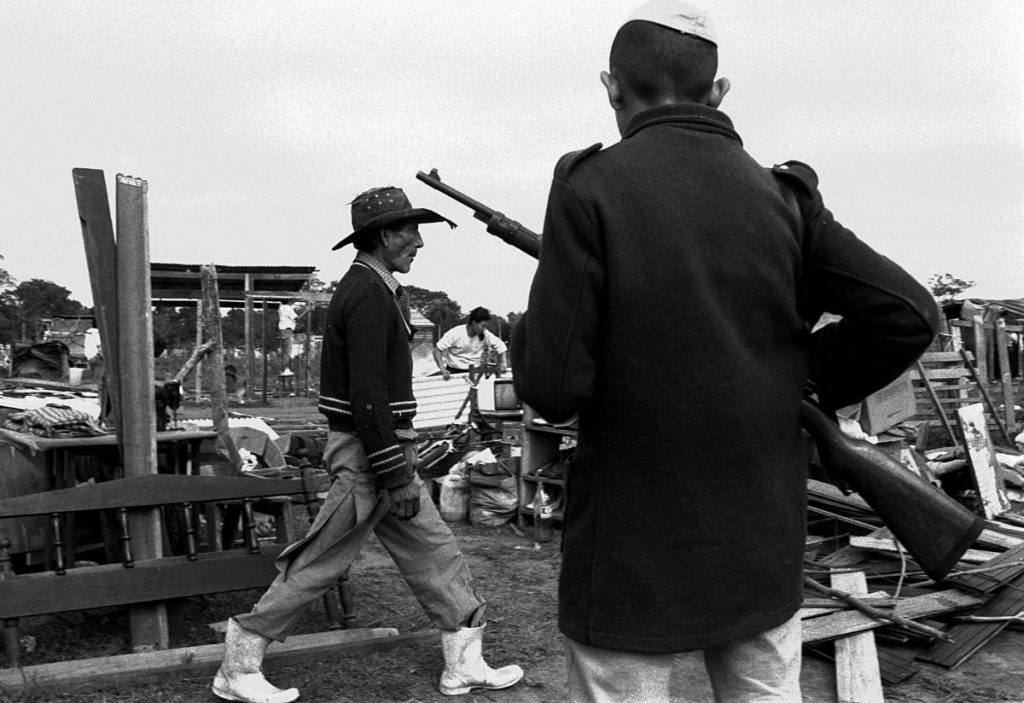 Conscripto de la Policía Nacional en desalojo de familias sin techo, Mariano Roque Alonso 1992.