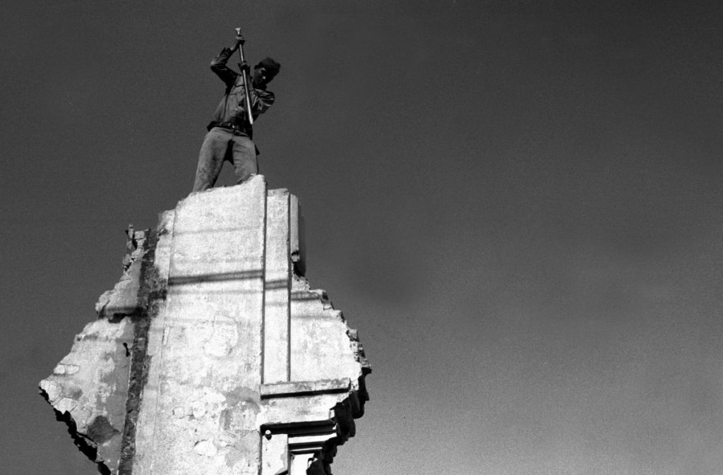 Soldado trabajando en la demolición del antiguo Hospital Militar, Asunción 1992.