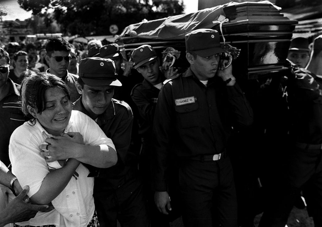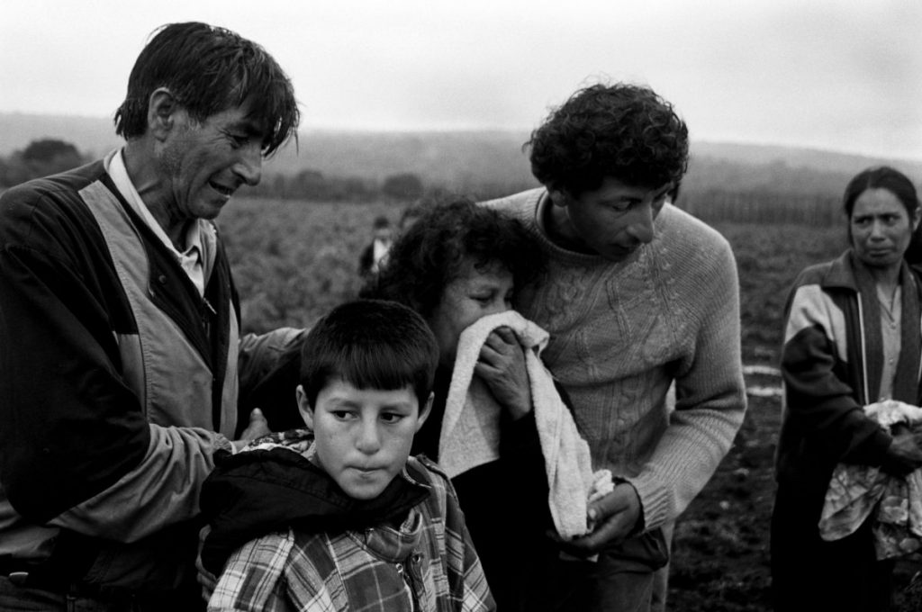 El soldado Víctor Hugo Maciel murió el 2 de octubre de 1995 a la edad de 16 años, como consecuencia del «descuereo» en la primera División de Caballería en Asunción. En la foto el padre, la madre y los hermanos de Víctor Hugo Maciel en el momento del entierro, en Edelira 21 (Itapúa).