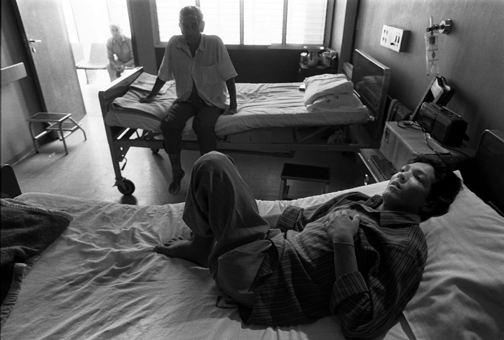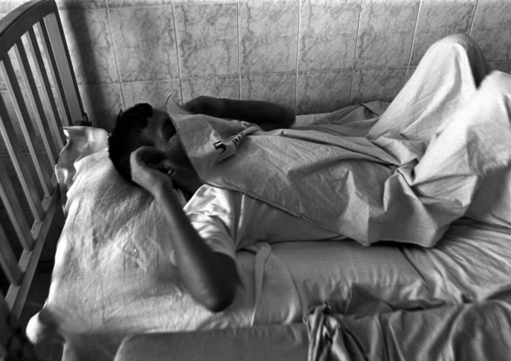 Soldados de la Armada Nacional en su dormitorio, Asunción 1990.