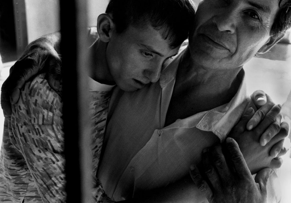 Dos compañeros conversan en el velorio de Vicente Ariel Noguera, de 17 años, muerto en el CIMEFOR el 10 de enero de 1996 en el III Cuerpo de Ejército de Mariscal Estigarribia, Chaco.