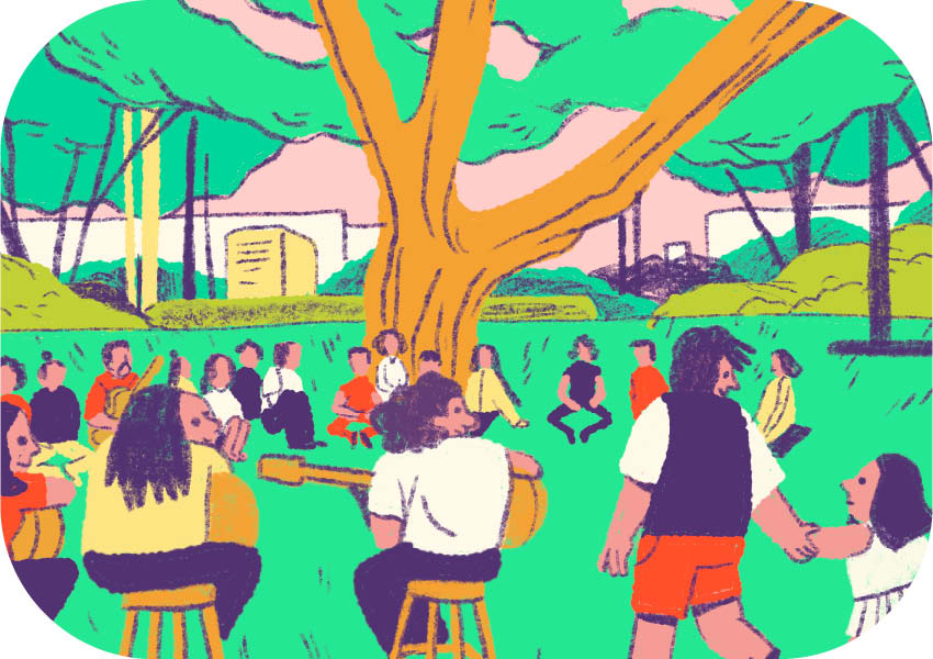 …Y el Cántaro tenía a su alrededor las manos de las cientas de familias que ya accedían a clases de guitarra, pintura y literatura gratis. Tenían el conocimiento de abuelas de cómo se hacían las casas antes. Tenían mucho, mucho barro de Areguá a su disposición.
