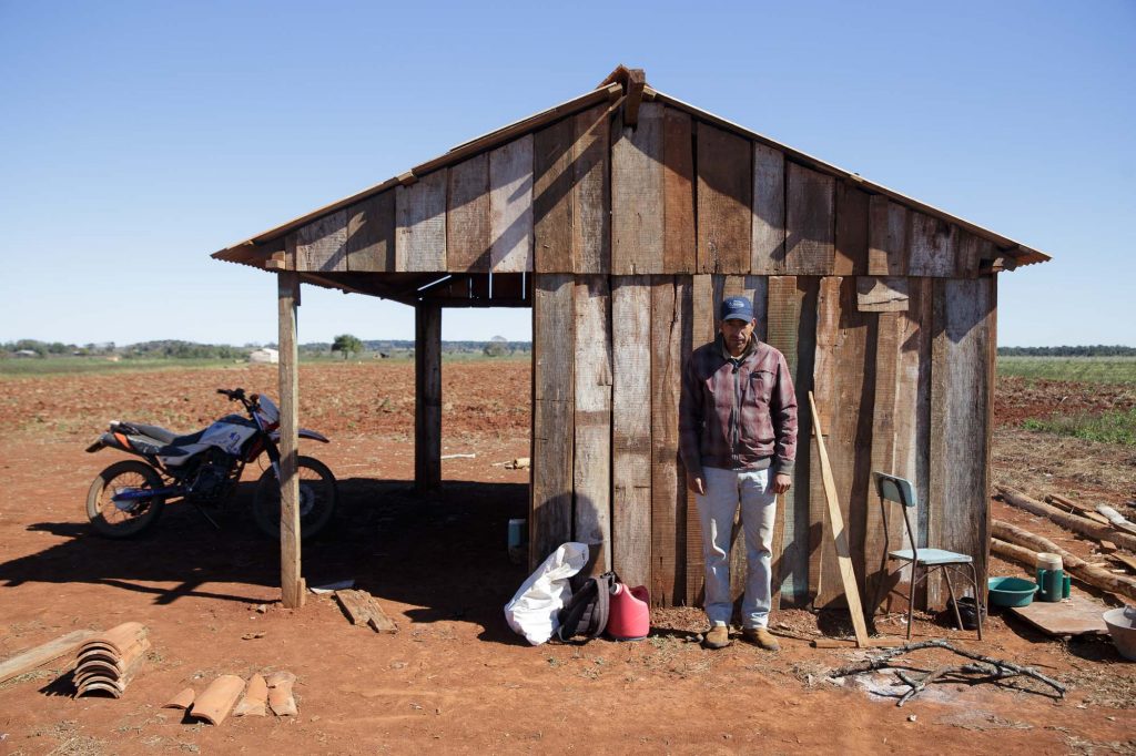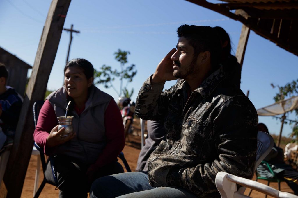 Eligio Brítez, de 35 años, vive en Guahory desde que tenía cinco. Produce en su chacra mandioca y poroto para comer. Además, cultiva maíz para venderlo. Cuenta que las tierras de Guahory fueron compradas por el Estado para los paraguayos y que fueron invadidas por los brasileños. «Ellos empezaron a presionar a las familias campesinas para que vendieran sus tierras. Le corrían a la gente con dinero, pagando por sus derecheras (derechos de posesión sobre la tierra) o comprando los lotes de manera fraudulenta. Buscaban ahogar a la gente, con veneno para los cultivos o con plata».