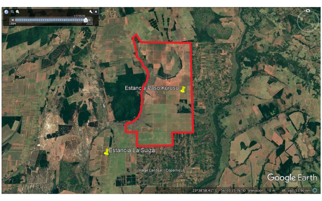 La estancia en San Pedro se trata de un inmueble de 21.833 hectáreas. Paso Kurusu dobla en tamaño a Asunción, la capital de Paraguay, que tiene 11.700 hectáreas.