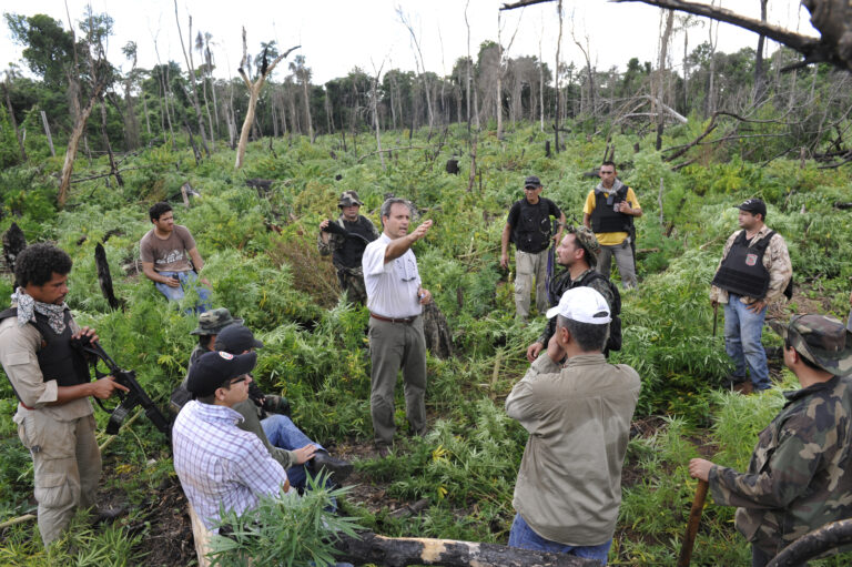 *Foto de portada: Intervención de la Senad en una de las estancias de Ulises Teixeira. El propietario (centro de la foto) ordena la limpieza de plantaciones ilegales de cannabis. ABC Color.