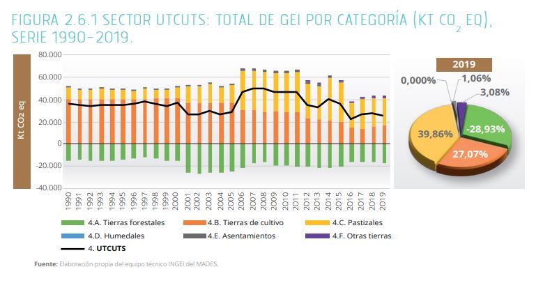 También el ministro del Ambiente, Rolando de Barros, en su informe por los 100 días que compartió en Instagram, dice que «se demuestra una reducción, con respecto al 2010, del 44% en emisiones en el sector cambio de uso de la tierra y silvicultura y un 14% de las emisiones de metano en el sector agricultura y ganadería».