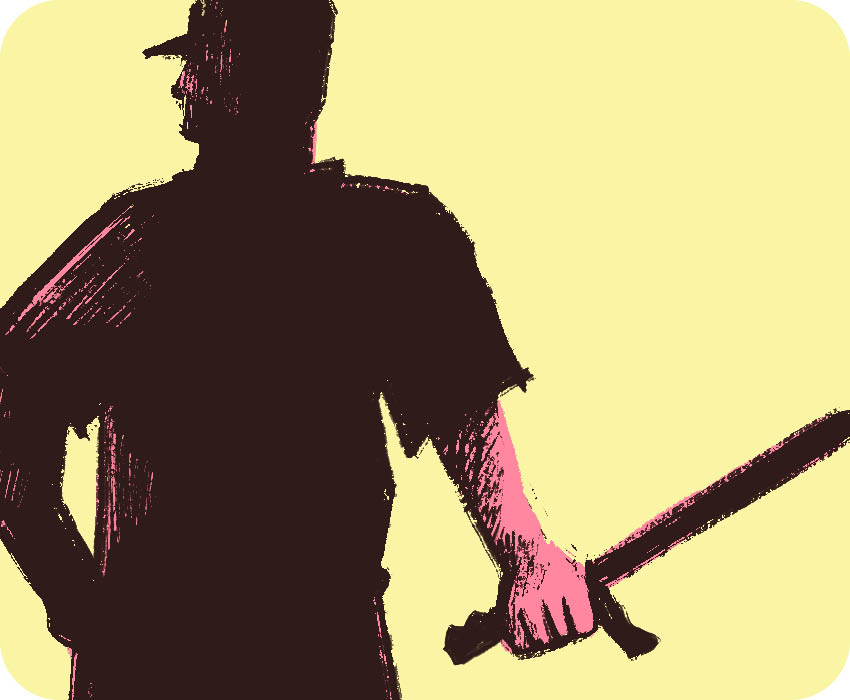 Eusebio Torres se para, camina hacia Carlos Casco y lo golpea con una cachiporra en la cara. Luego vuelve a sentarse y continúa con el interrogatorio.