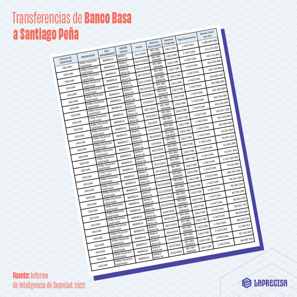 Transferencias de Banco Basa a Santiago Peña, actual candidato a la presidencia por el Partido Colorado, según Informe de Inteligencia de Seprelad.