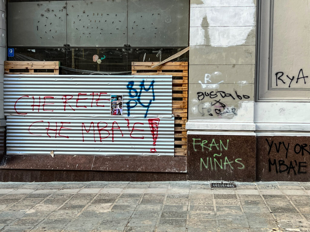 El 8 de marzo, Día Internacional de la Mujer, escribieron en un muro del centro de Asunción “Che rete, che mba’e”, que significa “Mi cuerpo es mío”, en guaraní.