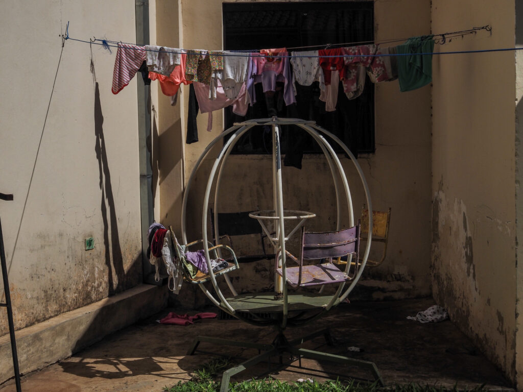 La ropa de las niñas y adolescentes se secan en una calesita en la Casa Rosa María. Foto: Nathaniel Janowitz para VICE World News.