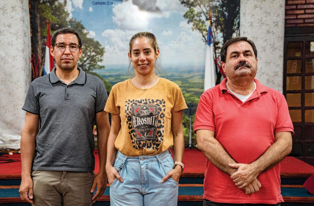 De izquierda a derecha. José Luis Figueredo, Denise Báez y Juan Andrés Bozzano, miembros de la comisión vecinal que denunció a Bitfarms Foto: Elisa Marecos & Sandino Flecha.