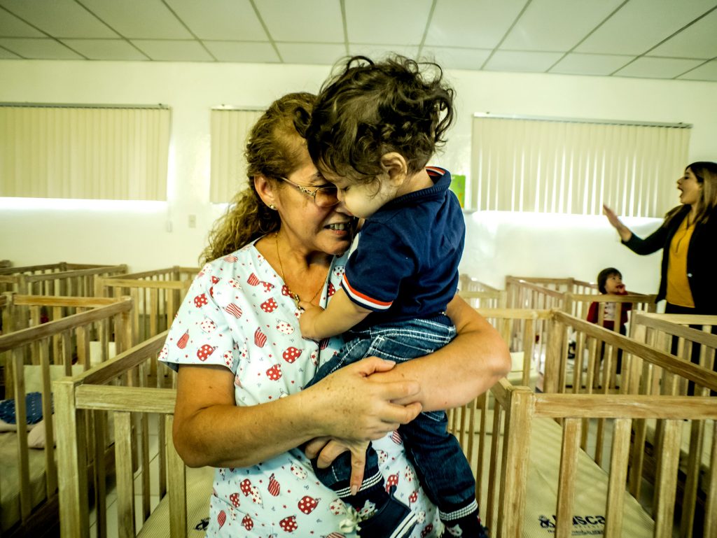 María Luisa Rolón es una de las tres «tías» que cuidan a las niñas y niños del parvulario de Laboratorios Lasca. Dice que es la «abuela postiza» de los más de 300 bebés que pasaron por ahí en 30 años.